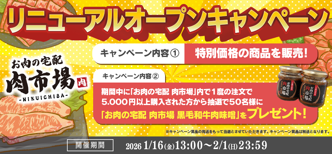 ■お肉の宅配 肉市場 リニューアルオープンキャンペーン概要